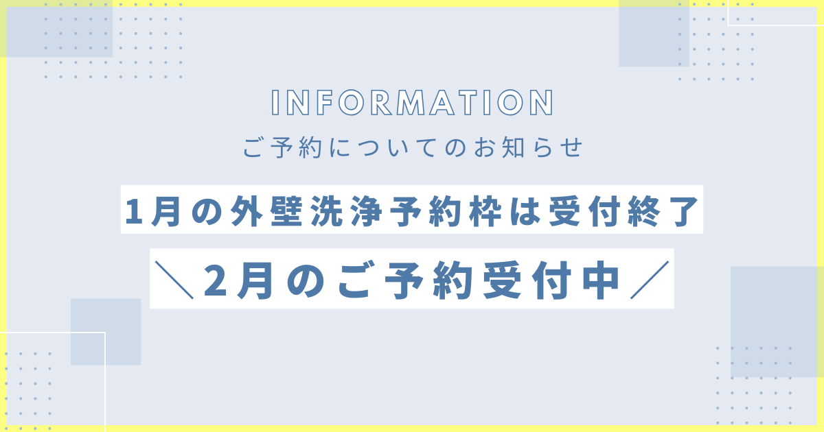 【1月の外壁洗浄予約枠は受付終了/2月のご予約受付中】